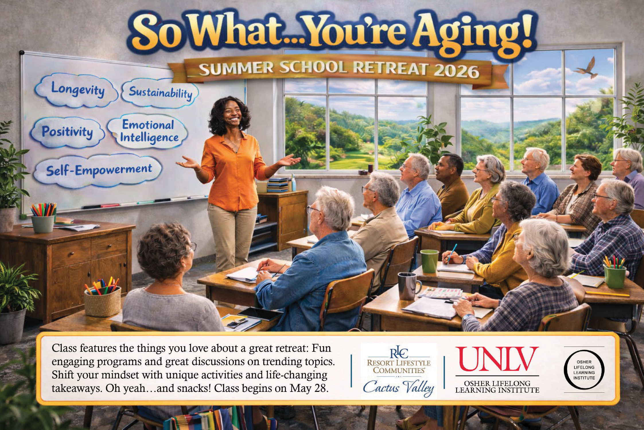 All lunch n’ learns are held at beautiful Nevada retirement communities. You’ll learn all about age, aging, ageism and positive aging.